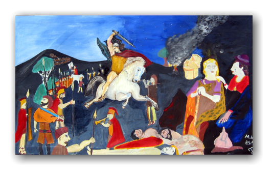 Suche die Stelle im Gemälde, die den Soundtrack “Germanen-Römermotiv” darstellt!